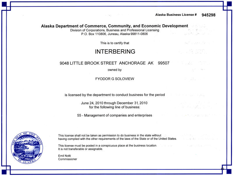 Владелец: ООО "ИнтерБеринг". Периодичность обновления лицензии: ежегодно или раз в два года.