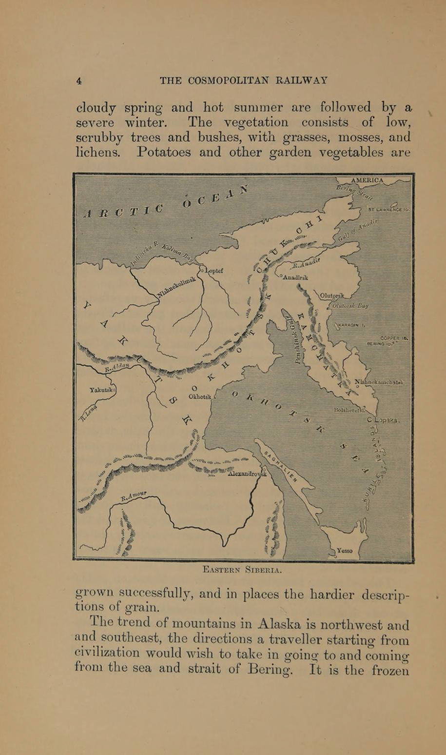 The envisioned rail corridor begins in Beijing and proceeds northeast through Heilongjiang Province to key junctions in eastern Russia, including Hohe and Skovorodino on the Trans‑Siberian Railway. From there, the route continues north through the Sakha Republic, passing Yakutsk and entering the Chukotka Autonomous Okrug toward the Bering Strait. Two potential routes are analyzed for access, and the freight and passenger corridor is designed with both conventional and high‑speed tracks, including gauge‑changing infrastructure to accommodate Russian and international standards.