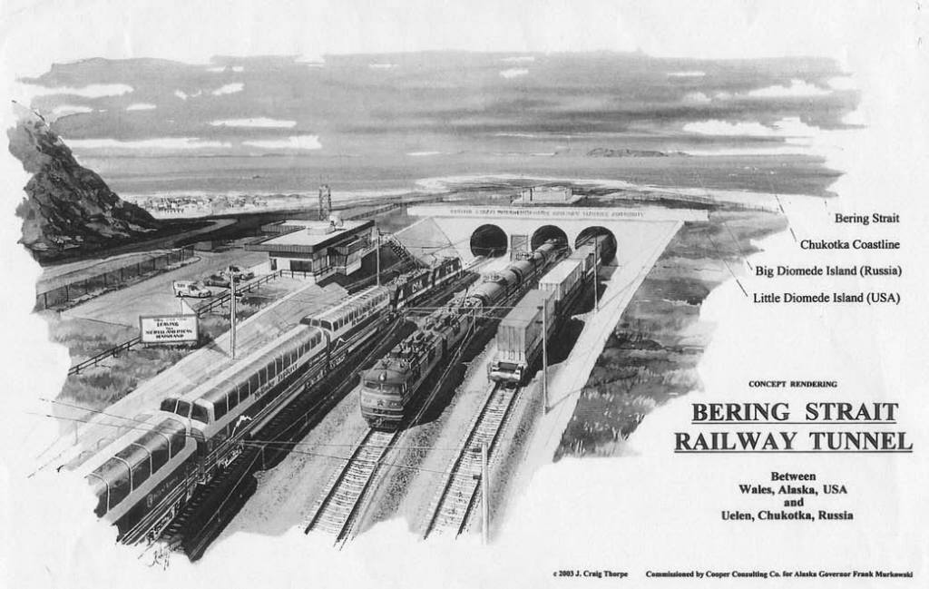 Концепция железнодорожного тоннеля под Беринговым проливом между Уэленом (Чукотка) и Уэйлсом (Аляска, США).