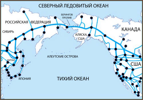 Карты и проекты международной железной дороги Россия - Канада - США Проект соединения Сибири и Аляски туннелем под Беринговым проливом.