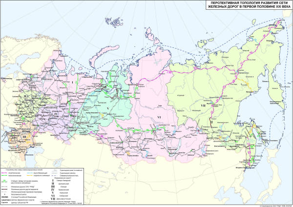 Перспективная топология развития железных дорог в России в первой половине 21 века. УВЕЛИЧИТЬ