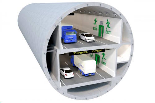 Проект строящегося двухярусного автомобильного тоннеля в Сиэтле (США). |